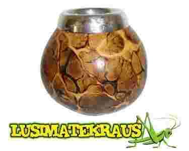 NOWOŚĆ! Tykwa bezpośrednio od argentyńskiego producenta. Wykonana z naturalnego, specjalnie wyselekcjonowanego, owocu tykwy. Absolutnie ręczny wyrób! Produkcja bez użycia jakichkolwiek sztucznych składników i farb, wyłącznie w procesie potrójnego wypalania ogniem. Każda tykwa jest unikatowa, o niepowtarzalnym naturalnie uzyskanym wzorze - NIE MA DWÓCH TAKICH SAMYCH EGZEMPLARZY. Dodatkowo otwór tykwy zabezpieczony jest metalową wirolą, która jednocześnie zdobi i zabezpiecza tykwę. Tykwa wymaga "curado", tzn. procesu przygotowawczego naczynia do użytku. Proces ten nazywany jest często "nasyceniem naczynia duchem yerba mate". Takiego określenia używają ludzie w krajach gdzie yerba mate jest czymś, bez czego nie da się żyć i pije się ją od pokoleń. Stosowna instrukcja załączona jest do zestawu.