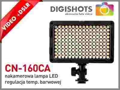 Lampa do kamer i aparatów cyfrowych z funkcją filmowania - model CN-160CA. Lampa ta jest nowszą wersją bardzo popularnej wśród polskich operatorów lampy nakamerowej CN-160. Producent doposażył ten model w funkcję płynnej regulacji temperatury barwowej. Na powierzchni reflektora rozmieszczono 160 diod LED, które generują dobre, mocne światło na odległość do 6-7 metrów. Lampa przeznaczona jest do doświetlania pierwszego planu w niekorzystnych warunkach oświetleniowych. Lampa doskonale sprawdza się w pomieszczeniach, gdzie ilość światła słonecznego jest zbyt mała i filmowana scena wymaga doświetlenia.