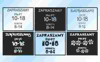 Po zakupie proszę o informacje jakie godziny otwarcia mają znaleźć się na naklejce oraz jaki wzór państwo wybierają.
