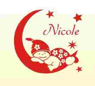 PRZEDMIOTEM LICYTACJI JEST NAKLEJKA DO POKOJU DZIECINNEGO Z MOTYWEM SPIACEGO DZIECKA Z JEGO IMIENIEM + OK. 20 GWIAZDEK