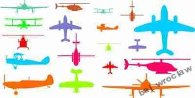 Przedmiotem aukcji są kolorowe naklejki ścienne - SAMOLOTY 18szt.