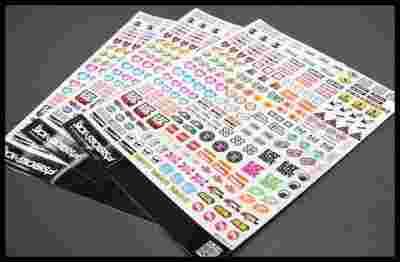 Arkusz z naklejkami ma wymiary 15x20cm. Średnia wielkość naklejki wynosi około 1,5cm.