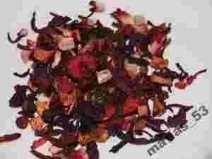 Zarówno kolor jak i smak zależą od mieszanki składników służących do przyrządzenia konkretnej herbatki. W zależności od upodobań można znaleźć mieszanki zawierające między innymi: rodzynki, suszone wiśnie, kandyzowane ananasy, płatki hibiskusa, skórki cytryny i pomarańczy. Lista suszonych i kandyzowanych owoców użytych przy produkcji suszu jest oczywiście znacznie dłuższa, ale na próżno wymieniać je wszystkie po kolei.