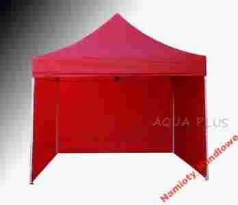Namiot zrobiony jest ze stalowych profili pomalowanych proszkowo, nogi są kwadratowe, na samym spodzie posiadają stopki do mocowania na powierzchni. Ściany namiotu wykonane są z ortalionu a dach z podgumowanego brezentu - w 100 % wodoodporny.