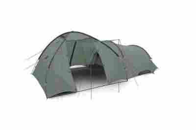 Ten model posiada wygodną tunelową sypialnię. Wejście do namiotu jest spore i posiada obszerny daszek.