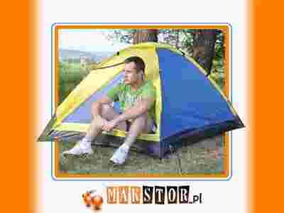 Namiot 2 osobowy typu iglo. Wodoodporność 1000 mm słupa wody. Kolor żółto-niebieski.