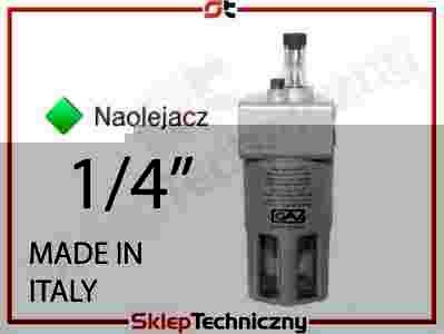 Naolejacz przystosowany do wszystkich instalacji pneumatycznych 1/4". Służy do automatycznego dozowania oleju do narzędzi pneumatycznych. Jego zaletą jest duża przepustowość, możliwość regulacji ilości oleju oraz trwała konstrukcja. Polecany do szlifierek pneumatycznych, kluczy udarowych, grzechotek, młotków pneumatycznych i innych narzędzi. Wyposażony jest w metalową osłonę zbiornika z olejem. Zbiornik łatwo napełnić olejem.