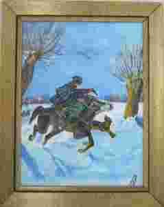 Napad wilków, akryl, 30x40, wg. J.Kossak, w ramie