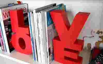 Napis LOVE drewniane litery Podpórka pod książki