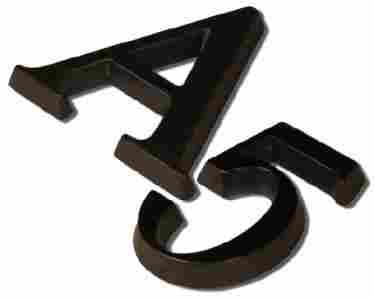 Litera, cyfra mosiężna - wykończenie czarne. Czcionka TORONTO o wysokości 5cm.