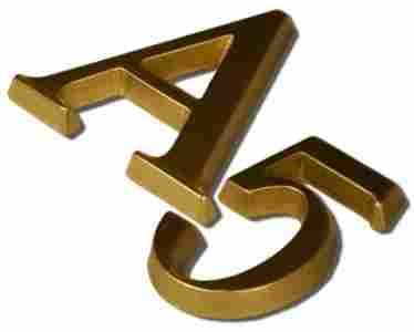 Litera, cyfra mosiężna - wykończenie żółte. Czcionka TORONTO o wysokości 6cm.