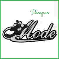 Naprasowanka NAPIS srebrzysty MODE kwiatek 13cm