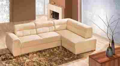 Nowoczesny narożnik Alexia z funkcja spania i pojemnikiem na pościel. Wykonany na sprężynie falistej.
