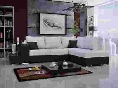 NAROŻNIK NA PRZEDSTAWIONYM ZDJĘCIU WYKONANY Z IV GRUPY: EKOSKÓRA MAGNOLIA( KOLOR CZARNY + TKANINA MAJORKA NR 2- CENA 1799zł
