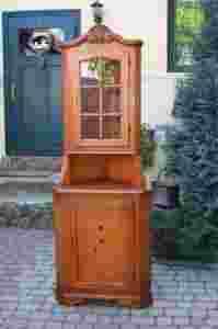 Efektowna narożnikowa witrynka,mebelek bardzo ładnie rzeźbiony z przeszkloną witrynką .