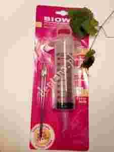 W skład kompletu wchodzą : strzykawka wielokrotnego użytku wykonana z elastycznego plastiku z podziałką co 10 ml oraz 2 igły ze stali nierdzewnej. Jedna z igieł posiada boczne otwory.