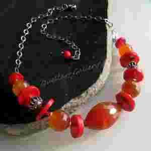 Naszyjnik AGAT KARNEOL KORAL srebro Rarytas