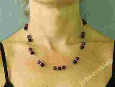 NASZYJNIK AMETYST ONYKS KORALE SREBRO LITE 925 BB8