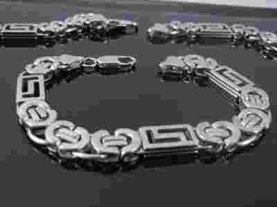 idealnie wypolerowany, nietypowy splot, prezentuje się świetnie. zapinany, wykonany w całości ze stali chirurgicznej 316L . nie odbarwia, nie czernieje, nie uczula
