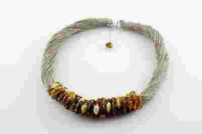 Naszyjnik, kolia z bursztynami w srebrze pr.925.