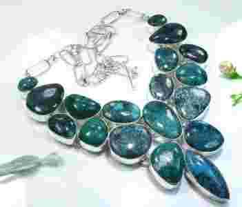 Naszyjnik/ Kolia - Zielony Turkus - sreb.pr.925