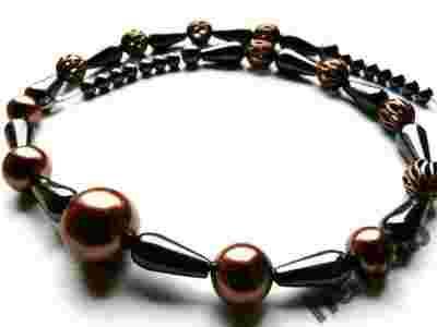 Naszyjnik, perły, hematyt, miedź