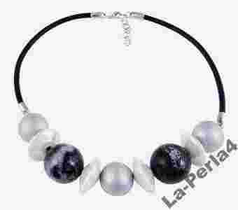 Naszyjnik porcelanowy (korale) ze srebrem
