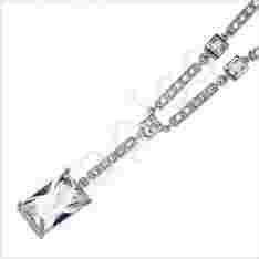 Naszyjnik wykonany ze srebra rodowanego próby 925. Kamień: cyrkonia. Długość 42 cm - 45 cm. Waga: 27,30 g. Naszyjnik na całej długości wysadzany cyrkoniami. Zawieszka posiada długość ok. 4,3 cm, gdzie największy kamień w kształcie prostokąta ma wymiar 1,6 cm x 1 cm.