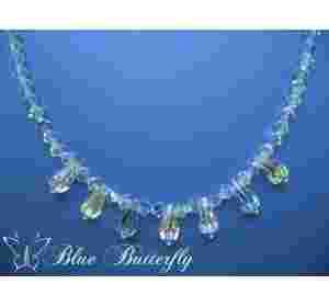 Naszyjnik wykonany ze srebra P 925 i kryształków Swarovski rozmiar 4 mm, kolor crystal aurore boreale oraz łezki kryształ AB 11x 5,5 mm, długość 43 cm