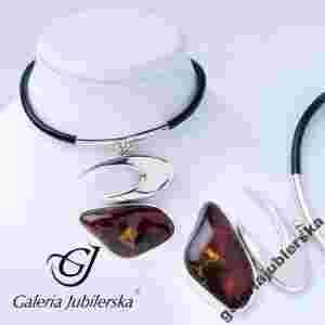 NASZYJNIK SREBRNY Z MODNYM BURSZTYNEM