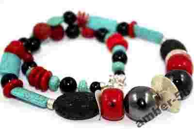 Naszyjnik srebro 925, koral, lawa, turkus, onyks