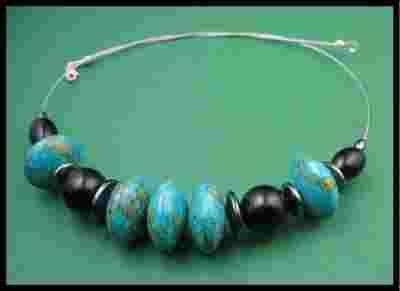 NASZYJNIK - TURKUS, CZARNY ONYKS, HEMATYT - SREBRO