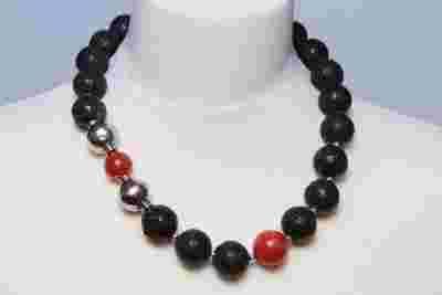 naszyjnik z lawy czarnej z koralem
