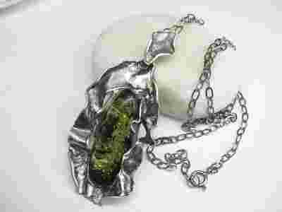 Naszyjnik Zielony Bursztyn i oksydowane i Srebro