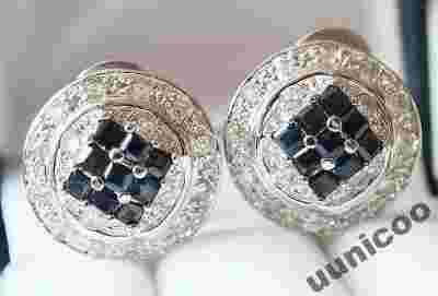 W KOLCZYKACH OPRAWIONE SĄ NATURALNE SZAFIRY O GŁĘBOKIEJ GRANATOWEJ, WRĘCZ CZARNEJ BARWIE.