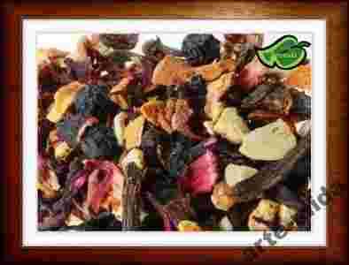 jabłko, winogrona, tarnina, bez, hibiskus, skórka róży, skórki pomarańczy i migdałowych płatków, laska wanilii, cynamon, goździki, aromat cytrusowo-rumowy.