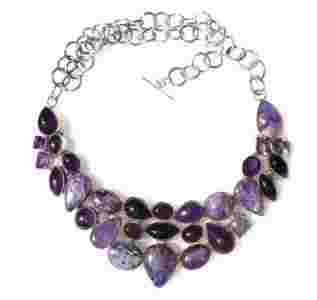 Naturalny AMETYST, Czaroit, Srebro 925*Naszyjnik *