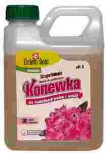 Konewka do rododendronów i azalii to silnie zakwaszający nawóz do podlewania w wygodnej, gotowej do użycia formie. Odpowiedni dla wszystkich ozdobnych roślin kwasolubnych -pH 3. Dzięki niskiemu pH zakwasza podłoże wokół rośliny. Opakowanie to około 100 dawek nawozowych.