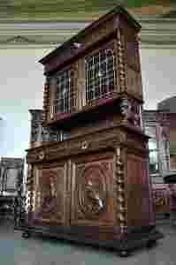 NEORENESANSOWY KREDENS MYŚLIWSKI z witrażami ...
