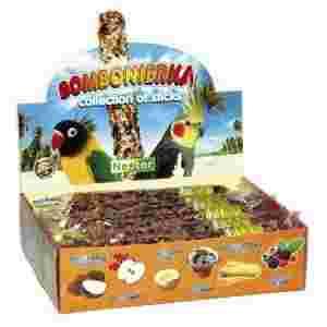 Bombonierka dla średnich papug to zestaw 12 kolb w 6 smakach: