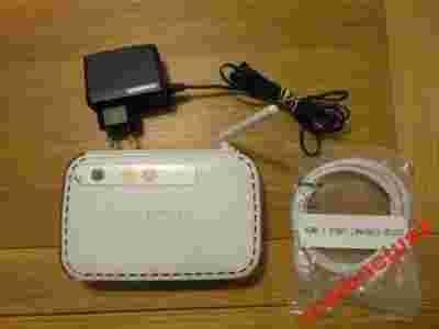 Router zgodny ze standardami 802.11g oraz 802.11b, wyposażony w 2 porty RJ45 (do podłączenia komputerów kablem sieciowym RJ45).