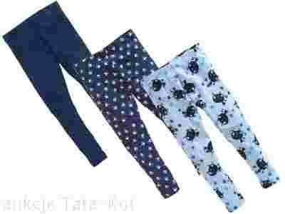 NEXT Legginsy 3-pak brytyjskiej firmy NEXT. W zestawie: niebieskie z wzorem w granatowe koty i zielone gwiazdki, granatowe w gwiazdki i gładkie granatowe. Rozmiar: 7L - 122cm. Skład: granatowe i w gwiazdki - 92% bawełna 8% elastan. Niebieskie w koty 55% bawełna 37% poliester 8% elastan.
