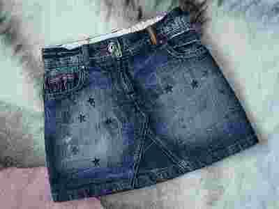 Kolor ciemny granatowy z fabrycznymi przetarciami i zagnieceniami,aplikacje to małe ciemne gwiazdki.