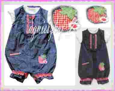 NEXT Playsuit Jeansowe spodnium z truskawką 62cm