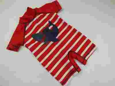 czerwony z rekinem, paseczki, śliczny