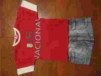 KOSZULKA ENTRY ROZM. Z METKI 98 CM WYPADA WIĘKSZA SPODENKI DŻINSOWE ROZM.102 CM