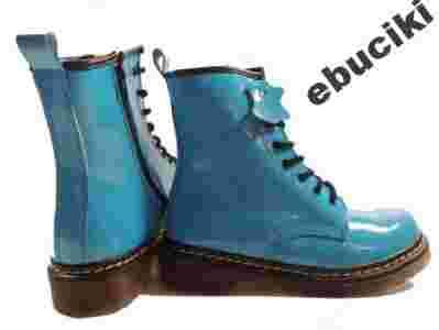 NIEBIESKIE TRAPERY GLANY LAKIER SKÓRA NATURALNA 39
