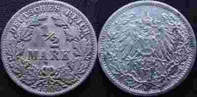 NIEMCY, 1/2 MARKI 1906 A - srebro, ładna