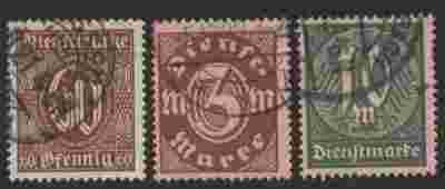 NIEMCY D. REICH DIENSTMARKEN Mi. 66-68 KASOWANE