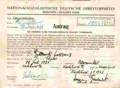 NIEMCY - DEKLARACJA DO NSDAP 1943 , ORYGINAŁ